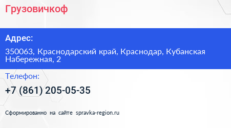 Грузовичкоф по адресу 350063, Краснодарский край, Краснодар, Кубанская Набережная, 2 в дальнейшем Организация, размещена в следующих категориях: