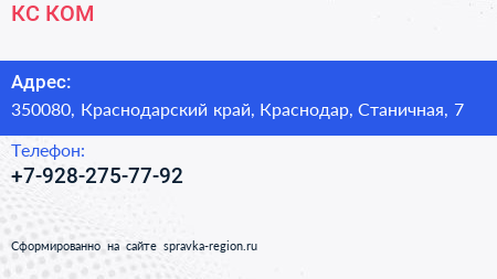 КС-КОМ по адресу 350080, Краснодарский край, Краснодар, Станичная, 7 в дальнейшем Организация, размещена в следующих категориях: