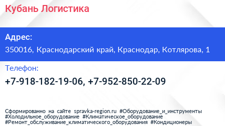 Кубань Логистика по адресу 350016, Краснодарский край, Краснодар, Котлярова, 1 в дальнейшем Организация, размещена в следующих категориях: