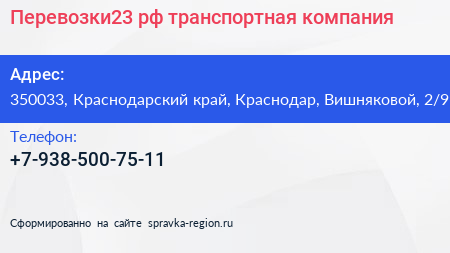 Перевозки23.рф, транспортная компания по адресу 350033, Краснодарский край, Краснодар, Вишняковой, 2/9 в дальнейшем Организация, размещена в следующих категориях: