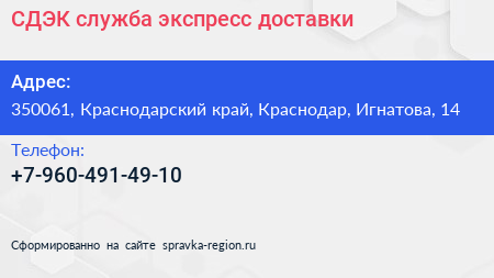 СДЭК, служба экспресс-доставки по адресу 350061, Краснодарский край, Краснодар, Игнатова, 14 в дальнейшем Организация, размещена в следующих категориях: