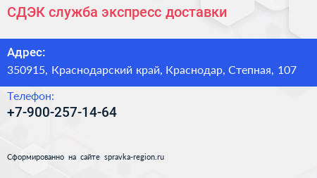 СДЭК, служба экспресс-доставки по адресу 350915, Краснодарский край, Краснодар, Степная, 107 в дальнейшем Организация, размещена в следующих категориях: