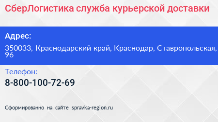 СберЛогистика, служба курьерской доставки по адресу 350033, Краснодарский край, Краснодар, Ставропольская, 96 в дальнейшем Организация, размещена в следующих категориях: