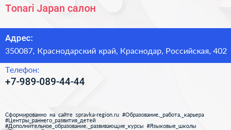 Tonari Japan, салон по адресу 350087, Краснодарский край, Краснодар, Российская, 402 в дальнейшем Организация, размещена в следующих категориях: