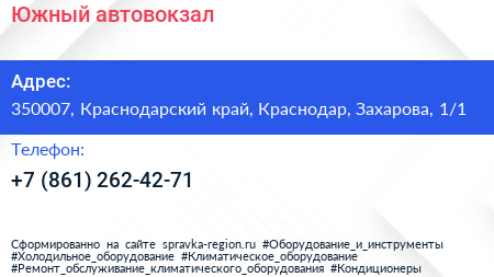 Южный, автовокзал по адресу 350007, Краснодарский край, Краснодар, Захарова, 1/1 в дальнейшем Организация, размещена в следующих категориях: