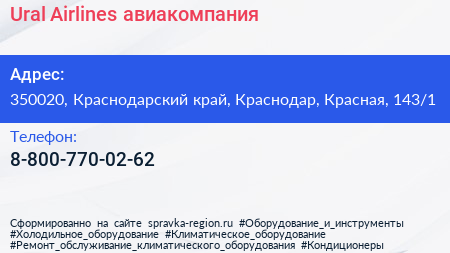 Ural Airlines, авиакомпания по адресу 350020, Краснодарский край, Краснодар, Красная, 143/1 в дальнейшем Организация, размещена в следующих категориях: