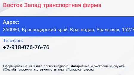 Восток-Запад, транспортная фирма по адресу 350080, Краснодарский край, Краснодар, Уральская, 152/7 в дальнейшем Организация, размещена в следующих категориях: