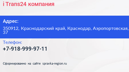 i-Trans24, компания по адресу 350912, Краснодарский край, Краснодар, Аэропортовская, 37 в дальнейшем Организация, размещена в следующих категориях: