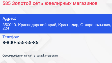 585*Золотой, сеть ювелирных магазинов по адресу 350040, Краснодарский край, Краснодар, Ставропольская, 224 в дальнейшем Организация, размещена в следующих категориях: