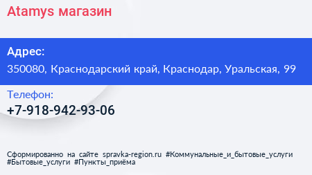 Atamys, магазин по адресу 350080, Краснодарский край, Краснодар, Уральская, 99 в дальнейшем Организация, размещена в следующих категориях:
