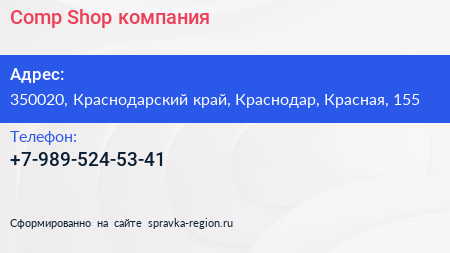 Comp Shop, компания по адресу 350020, Краснодарский край, Краснодар, Красная, 155 в дальнейшем Организация, размещена в следующих категориях: