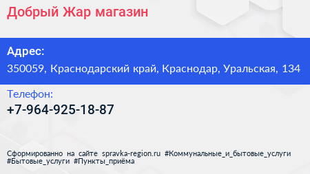 Добрый Жар, магазин по адресу 350059, Краснодарский край, Краснодар, Уральская, 134 в дальнейшем Организация, размещена в следующих категориях: