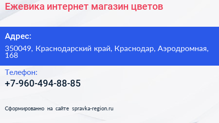 Ежевика, интернет-магазин цветов по адресу 350049, Краснодарский край, Краснодар, Аэродромная, 168 в дальнейшем Организация, размещена в следующих категориях: