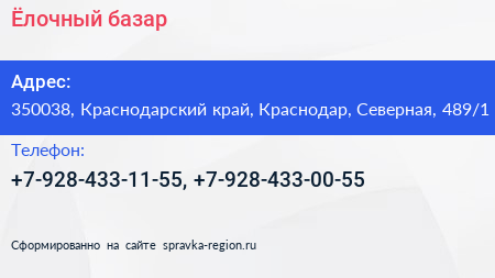 Ёлочный базар по адресу 350038, Краснодарский край, Краснодар, Северная, 489/1 в дальнейшем Организация, размещена в следующих категориях: