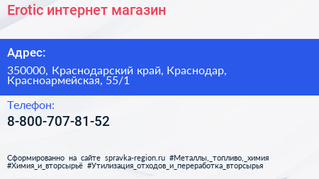 Erotic, интернет-магазин по адресу 350000, Краснодарский край, Краснодар, Красноармейская, 55/1 в дальнейшем Организация, размещена в следующих категориях: