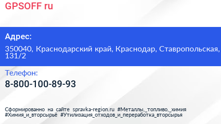 GPSOFF.ru по адресу 350040, Краснодарский край, Краснодар, Ставропольская, 131/2 в дальнейшем Организация, размещена в следующих категориях: