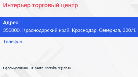 Интерьер, торговый центр по адресу 350000, Краснодарский край, Краснодар, Северная, 320/1 в дальнейшем Организация, размещена в следующих категориях: