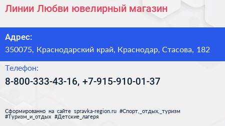 Линии Любви, ювелирный магазин по адресу 350075, Краснодарский край, Краснодар, Стасова, 182 в дальнейшем Организация, размещена в следующих категориях: