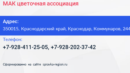 МАК, цветочная ассоциация по адресу 350015, Краснодарский край, Краснодар, Коммунаров, 244 в дальнейшем Организация, размещена в следующих категориях: