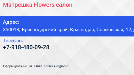 Матрешка Flowers, салон по адресу 350018, Краснодарский край, Краснодар, Сормовская, 12д в дальнейшем Организация, размещена в следующих категориях: