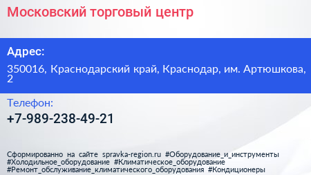 Московский, торговый центр по адресу 350016, Краснодарский край, Краснодар, им. Артюшкова, 2 в дальнейшем Организация, размещена в следующих категориях: