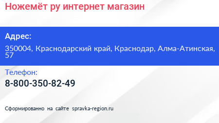 Ножемёт.ру, интернет-магазин по адресу 350004, Краснодарский край, Краснодар, Алма-Атинская, 57 в дальнейшем Организация, размещена в следующих категориях: