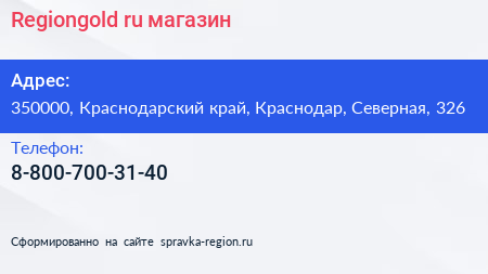 Regiongold.ru, магазин по адресу 350000, Краснодарский край, Краснодар, Северная, 326 в дальнейшем Организация, размещена в следующих категориях: