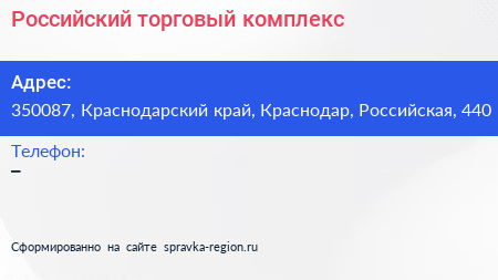 Российский, торговый комплекс по адресу 350087, Краснодарский край, Краснодар, Российская, 440 в дальнейшем Организация, размещена в следующих категориях: