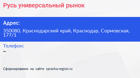 Русь, универсальный рынок по адресу 350080, Краснодарский край, Краснодар, Сормовская, 177/1 в дальнейшем Организация, размещена в следующих категориях: