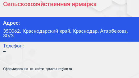 Сельскохозяйственная ярмарка по адресу 350062, Краснодарский край, Краснодар, Атарбекова, 30/3 в дальнейшем Организация, размещена в следующих категориях: