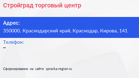 Стройград, торговый центр по адресу 350000, Краснодарский край, Краснодар, Кирова, 141 в дальнейшем Организация, размещена в следующих категориях: