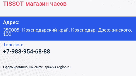 TISSOT, магазин часов по адресу 350005, Краснодарский край, Краснодар, Дзержинского, 100 в дальнейшем Организация, размещена в следующих категориях: