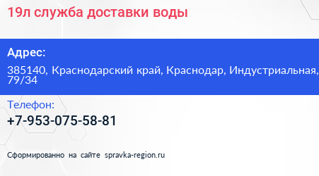 19л, служба доставки воды по адресу 385140, Краснодарский край, Краснодар, Индустриальная, 79/34 в дальнейшем Организация, размещена в следующих категориях: