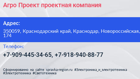 Агро-Проект, проектная компания по адресу 350059, Краснодарский край, Краснодар, Новороссийская, 174 в дальнейшем Организация, размещена в следующих категориях: