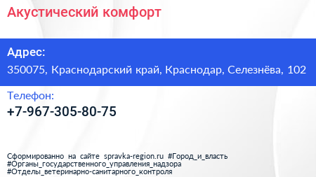 Акустический комфорт по адресу 350075, Краснодарский край, Краснодар, Селезнёва, 102 в дальнейшем Организация, размещена в следующих категориях: