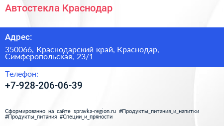 Автостекла Краснодар по адресу 350066, Краснодарский край, Краснодар, Симферопольская, 23/1 в дальнейшем Организация, размещена в следующих категориях: