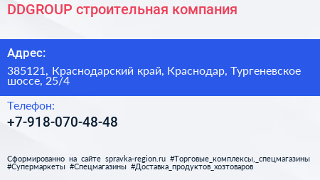 DDGROUP, строительная компания по адресу 385121, Краснодарский край, Краснодар, Тургеневское шоссе, 25/4 в дальнейшем Организация, размещена в следующих категориях: