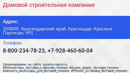 Домовой, строительная компания по адресу 350049, Краснодарский край, Краснодар, Красных Партизан, 491 в дальнейшем Организация, размещена в следующих категориях: