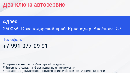 Два ключа, автосервис по адресу 350056, Краснодарский край, Краснодар, Аксёнова, 37 в дальнейшем Организация, размещена в следующих категориях: