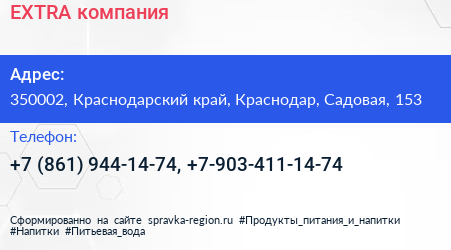 EXTRA, компания по адресу 350002, Краснодарский край, Краснодар, Садовая, 153 в дальнейшем Организация, размещена в следующих категориях:
