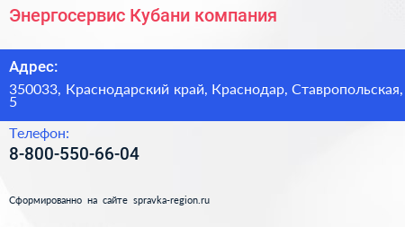 Энергосервис Кубани, компания по адресу 350033, Краснодарский край, Краснодар, Ставропольская, 5 в дальнейшем Организация, размещена в следующих категориях: