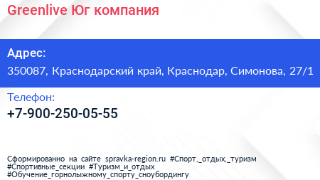 Greenlive Юг, компания по адресу 350087, Краснодарский край, Краснодар, Симонова, 27/1 в дальнейшем Организация, размещена в следующих категориях: