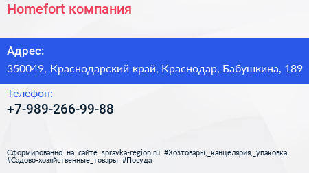 Homefort, компания по адресу 350049, Краснодарский край, Краснодар, Бабушкина, 189 в дальнейшем Организация, размещена в следующих категориях: