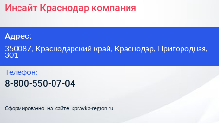 Инсайт Краснодар, компания по адресу 350087, Краснодарский край, Краснодар, Пригородная, 301 в дальнейшем Организация, размещена в следующих категориях: