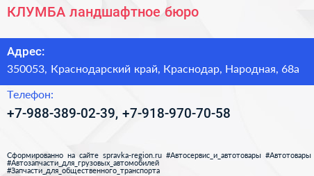 КЛУМБА, ландшафтное бюро по адресу 350053, Краснодарский край, Краснодар, Народная, 68а в дальнейшем Организация, размещена в следующих категориях: