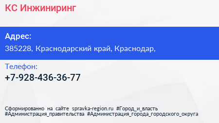 КС-Инжиниринг по адресу 385228, Краснодарский край, Краснодар, в дальнейшем Организация, размещена в следующих категориях: