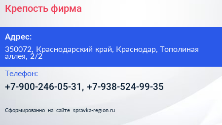 Крепость, фирма по адресу 350072, Краснодарский край, Краснодар, Тополиная аллея, 2/2 в дальнейшем Организация, размещена в следующих категориях: