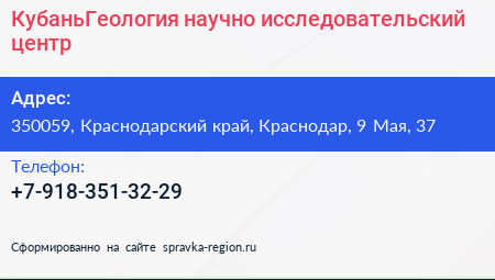 КубаньГеология, научно-исследовательский центр по адресу 350059, Краснодарский край, Краснодар, 9 Мая, 37 в дальнейшем Организация, размещена в следующих категориях: