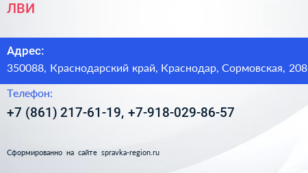 ЛВИ по адресу 350088, Краснодарский край, Краснодар, Сормовская, 208 в дальнейшем Организация, размещена в следующих категориях: