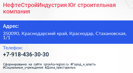 НефтеСтройИндустрия-Юг, строительная компания по адресу 350090, Краснодарский край, Краснодар, Стахановская, 1/1 в дальнейшем Организация, размещена в следующих категориях: